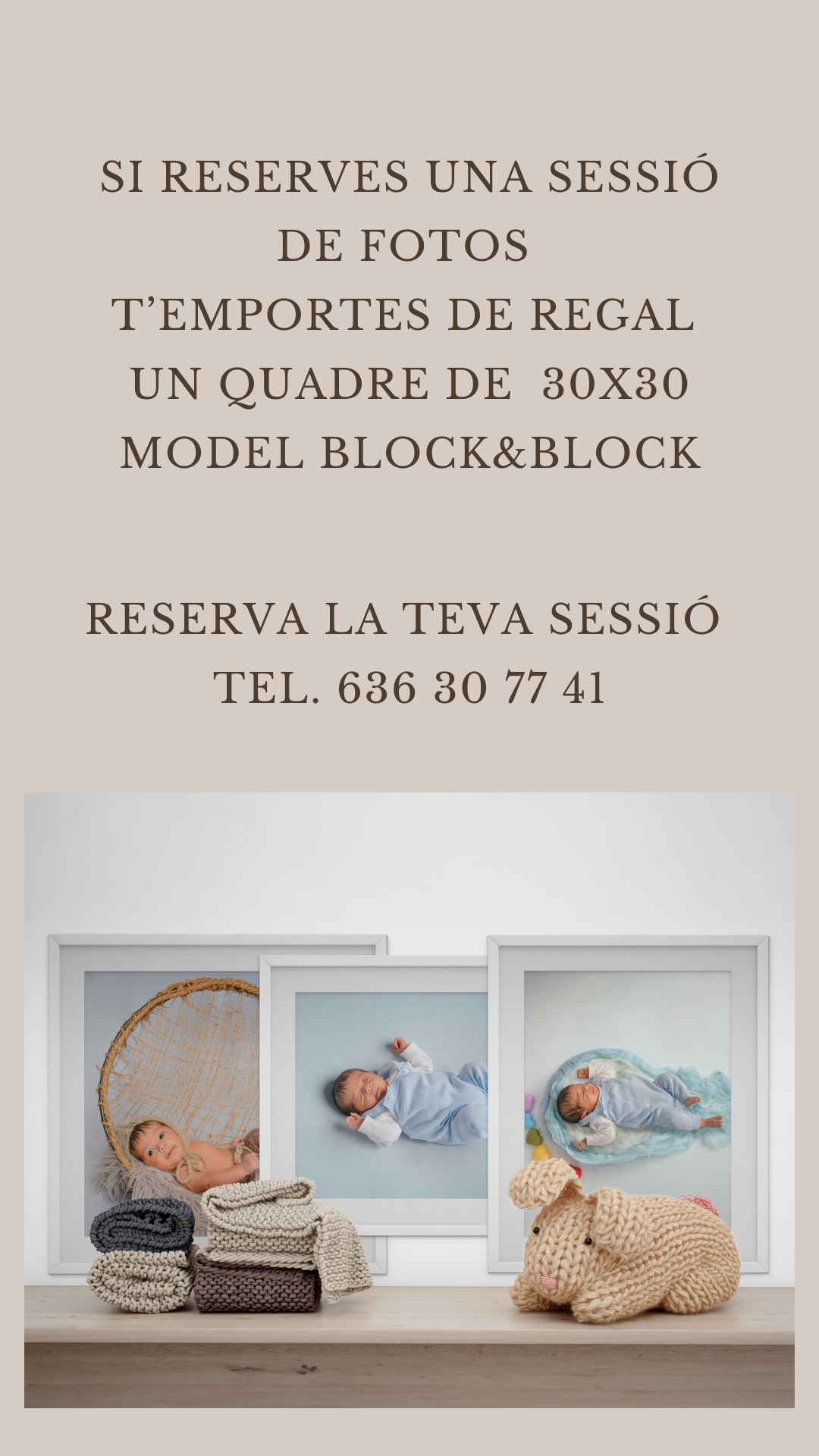 CON LA RESERVA DE UNA SESIÓN DE FOTOS (newborn, infantil, embarazada, de pareja o familiar) REGALO DE UN CUADRO MODELO BLOCK & BLOCK DE 30X30